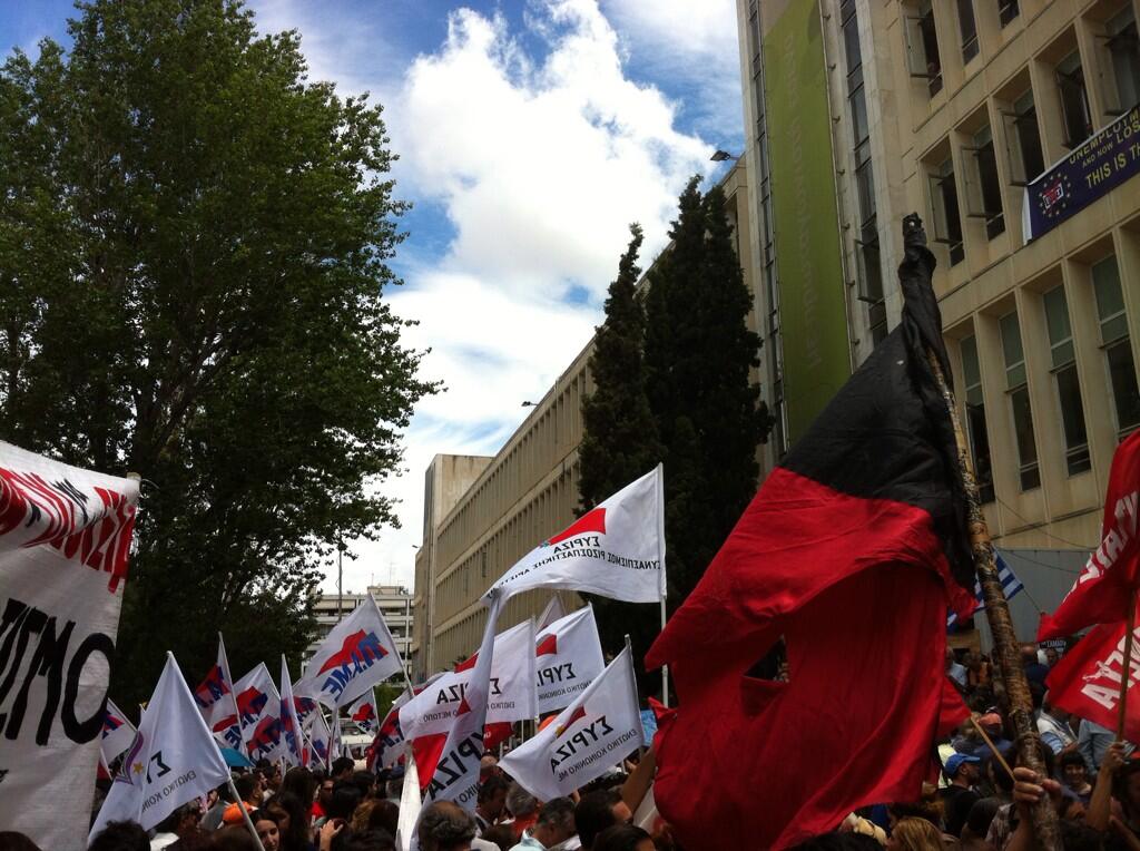 14:20 Προαύλιο της ΕΡΤ: Σημαίες και συνθήματα από ΣΥΡΙΖΑ, ΠΑΜΕ, ΑΝΤΑΡΣΥΑ και Αντιεξουσιαστική Κίνηση - συνεχίζει να συρρέει κόσμος από την Μεσογείων (όπου είναι πλημμυρισμένα από κόσμο και τα δύο ρεύματα)